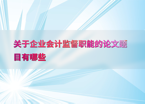 在探讨企业会计监督职能时,选择一个合适的论文题目至关重要。