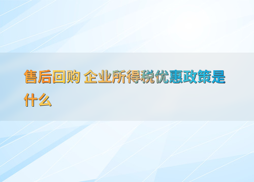 售后回购 企业所得税优惠政策是什么