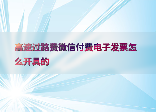 高速过路费微信付费电子发票怎么开具的