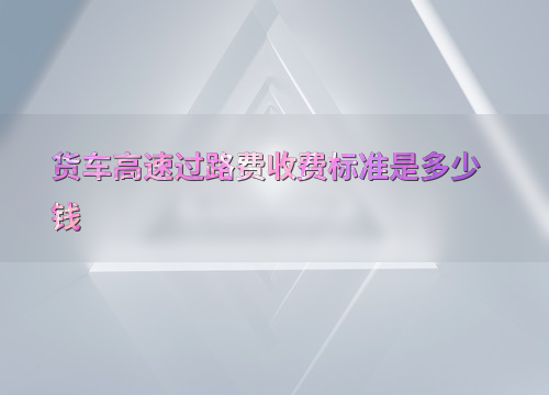 货车高速过路费收费标准解析