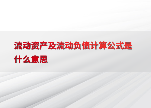 流动资产及流动负债计算公式是什么意思