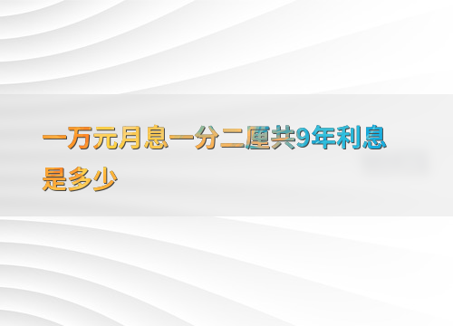 计算结果为:I = 10,000 × 0.012 × 108 = 12,960元。这意味着在这9年内,借款者总共需要支付12,960元的利息。