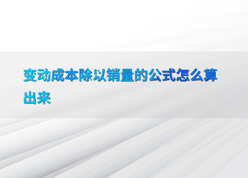 变动成本除以销量的公式怎么算出来