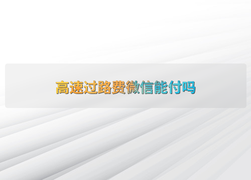 高速过路费微信能付吗