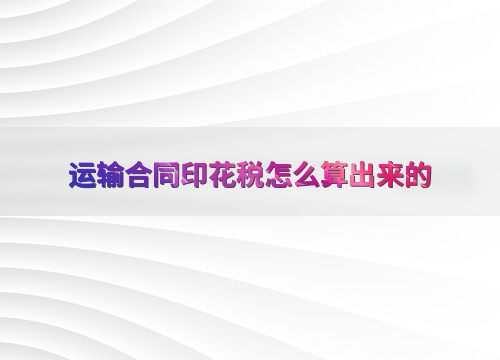 印花税 = 合同金额 × 税率。例如,如果一份运输合同的金额为100,000元人民币,则该合同应缴纳的印花税为: