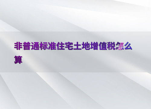 非普通标准住宅土地增值税怎么算