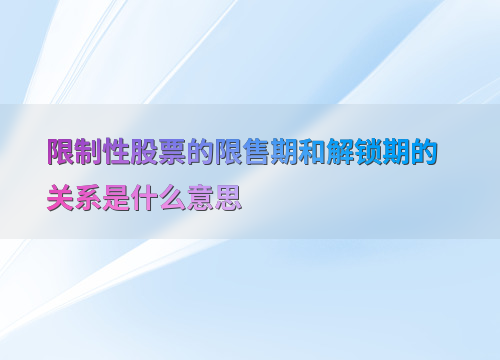 当限售期结束后,进入解锁期,这意味着持有人可以逐步获得对这些股票的完全所有权和处置权。