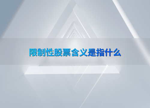 限制性股票是一种公司授予员工或其他相关人员的股票形式,但与普通股票不同的是,它附带一定的条件和限制。