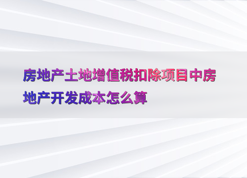 房地产土地增值税扣除项目中房地产开发成本怎么算