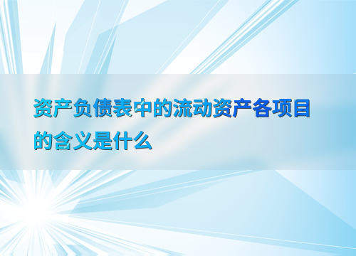 在资产负债表中,流动资产是指企业在一个营业周期内(通常为一年)可以变现或耗用的资产。