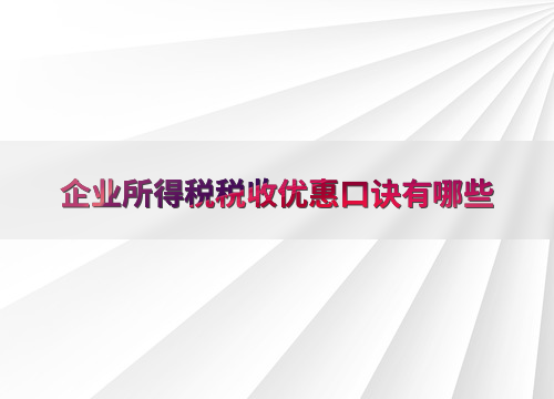 企业所得税税收优惠口诀有哪些
