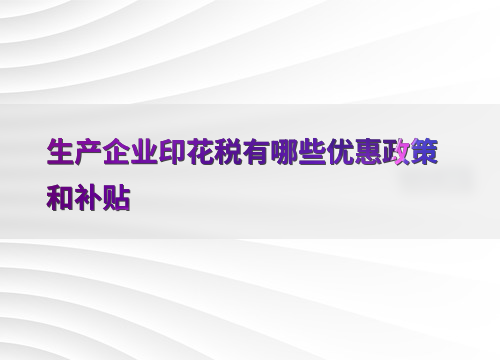生产企业印花税有哪些优惠政策和补贴