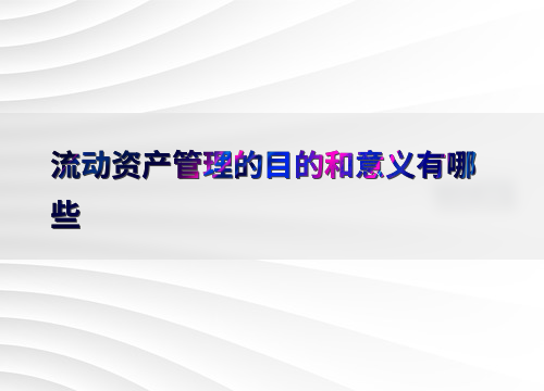流动资产管理的目的和意义