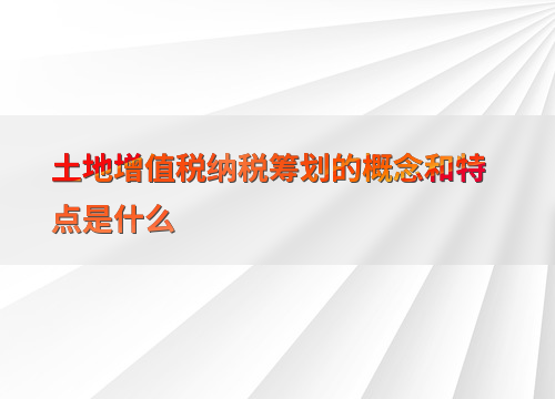 土地增值税纳税筹划的概念和特点是什么
