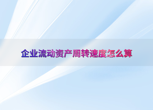 企业流动资产周转速度怎么算