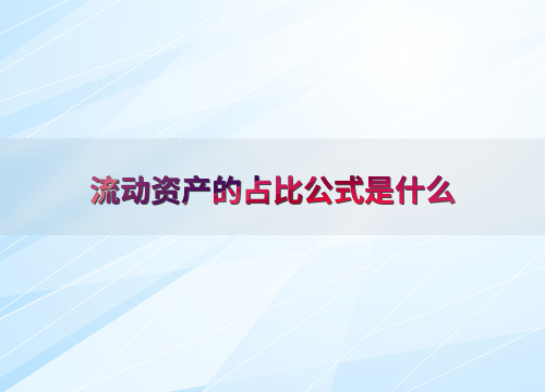 流动资产占比 = (流动资产总额 / 总资产) × 100%