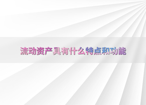 流动资产具有什么特点和功能