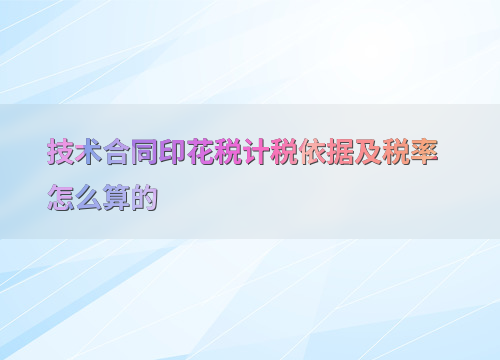 技术合同印花税的税率一般为万分之三(0.03%)。其计算公式为: