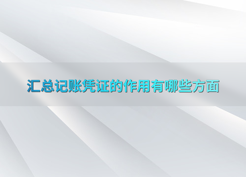 汇总记账凭证的作用有哪些方面