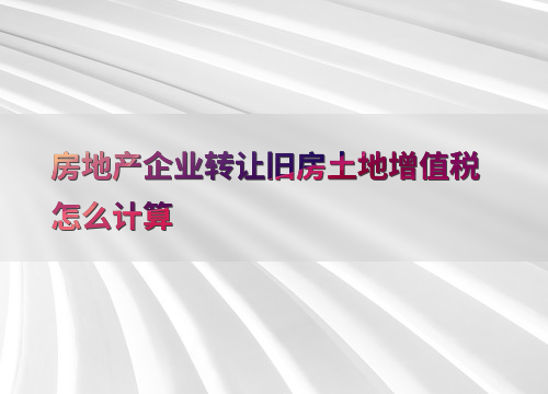 房地产企业转让旧房土地增值税怎么计算