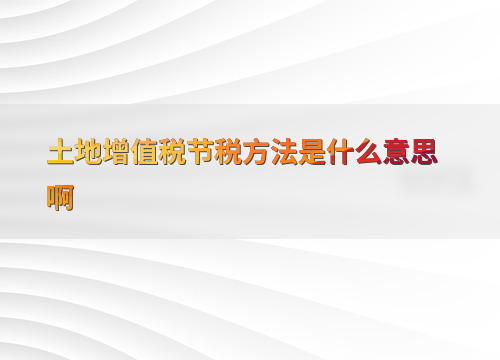 土地增值税节税方法是什么意思啊