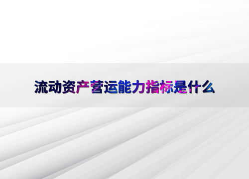 流动资产营运能力指标是什么