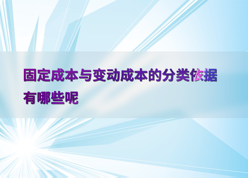 固定成本与变动成本的分类依据有哪些呢
