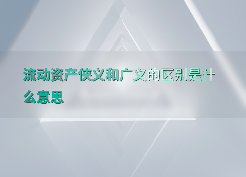 在财务会计中,流动资产的概念可以根据其定义范围分为狭义和广义两种。