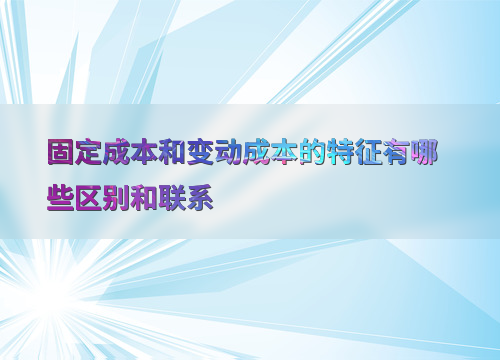 固定成本和变动成本的特征有哪些区别和联系