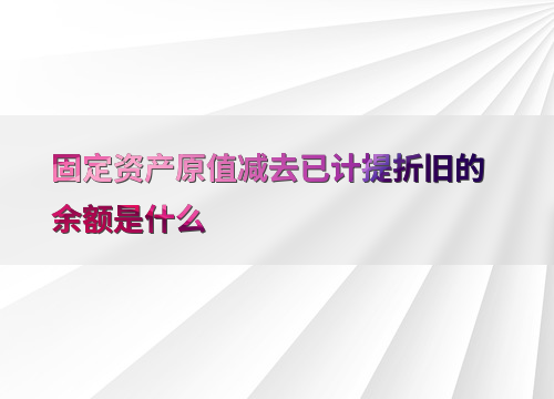 在财务会计中,固定资产原值减去已计提折旧的余额被称为固定资产净值(Net Book Value, NBV)。