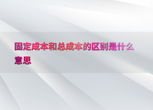 固定成本和总成本的区别是什么意思