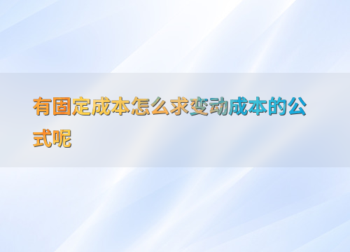 有固定成本怎么求变动成本的公式呢