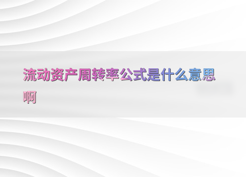 流动资产周转率公式是什么意思啊