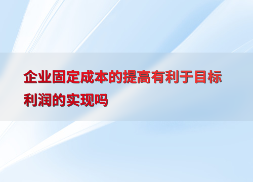 如何评估固定成本对企业盈利能力的影响?答:评估固定成本影响时,需结合企业的具体情况进行分析,包括行业特性、市场环境及企业自身的财务状况。通过敏感性分析,了解不同情景下固定成本变化对利润的影响。