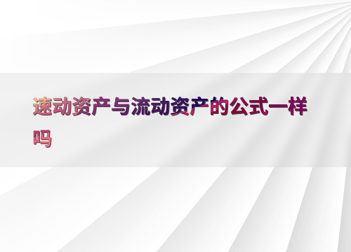 速动资产与流动资产的公式一样吗