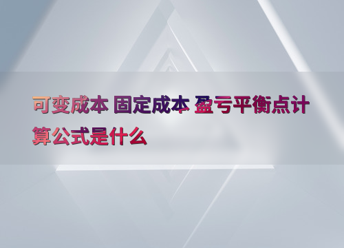 可变成本 固定成本 盈亏平衡点计算公式是什么