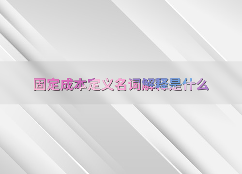 固定成本定义名词解释是什么