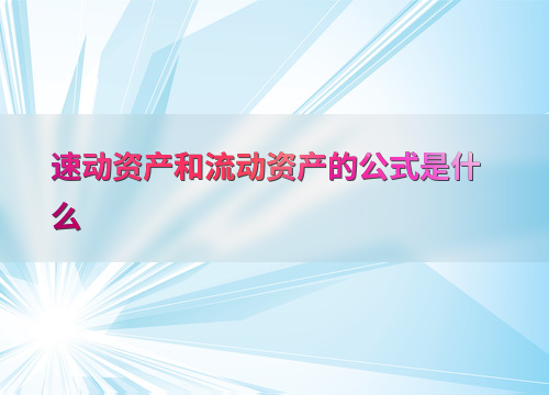 速动资产和流动资产的公式是什么