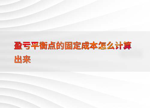 盈亏平衡点的固定成本计算方法