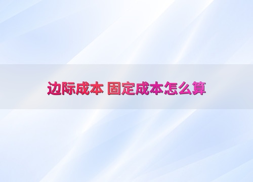 边际成本 固定成本怎么算