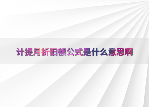 计提月折旧额公式是什么意思啊