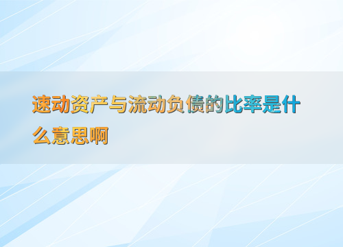 速动资产与流动负债的比率是什么意思啊