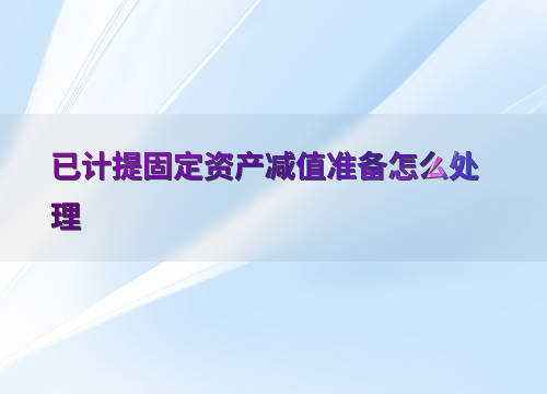 已计提固定资产减值准备怎么处理