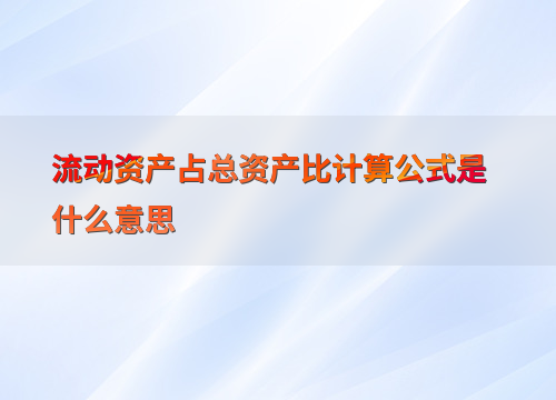 流动资产占总资产比是衡量企业财务健康状况的重要指标之一。