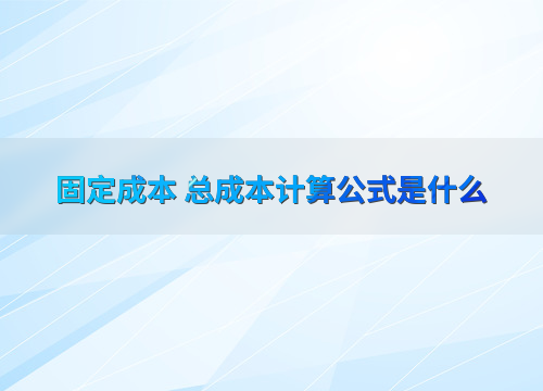 固定成本的计算通常不需要复杂的公式,而是通过直接加总各项固定支出得出。然而,理解固定成本对于制定预算和进行成本控制至关重要。总成本则由固定成本和变动成本共同构成。其计算公式为: