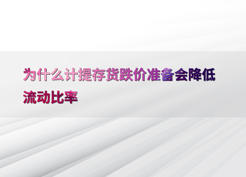 为什么计提存货跌价准备会降低流动比率