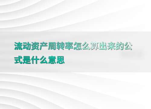 流动资产周转率怎么算出来的公式是什么意思