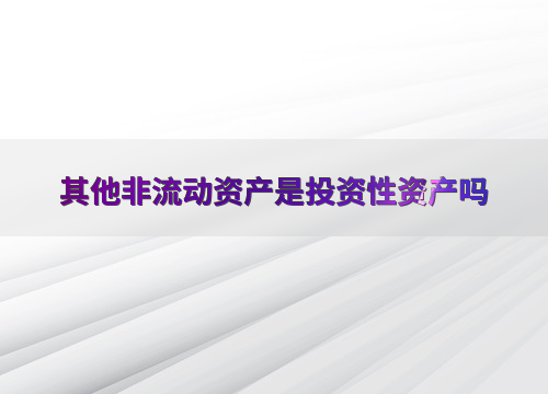 要明确其他非流动资产是否属于投资性资产,需要具体分析其性质和用途。