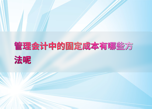 管理会计中的固定成本有哪些方法呢