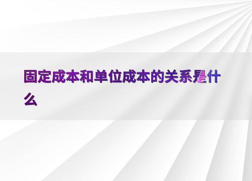 固定成本和单位成本的关系是什么
